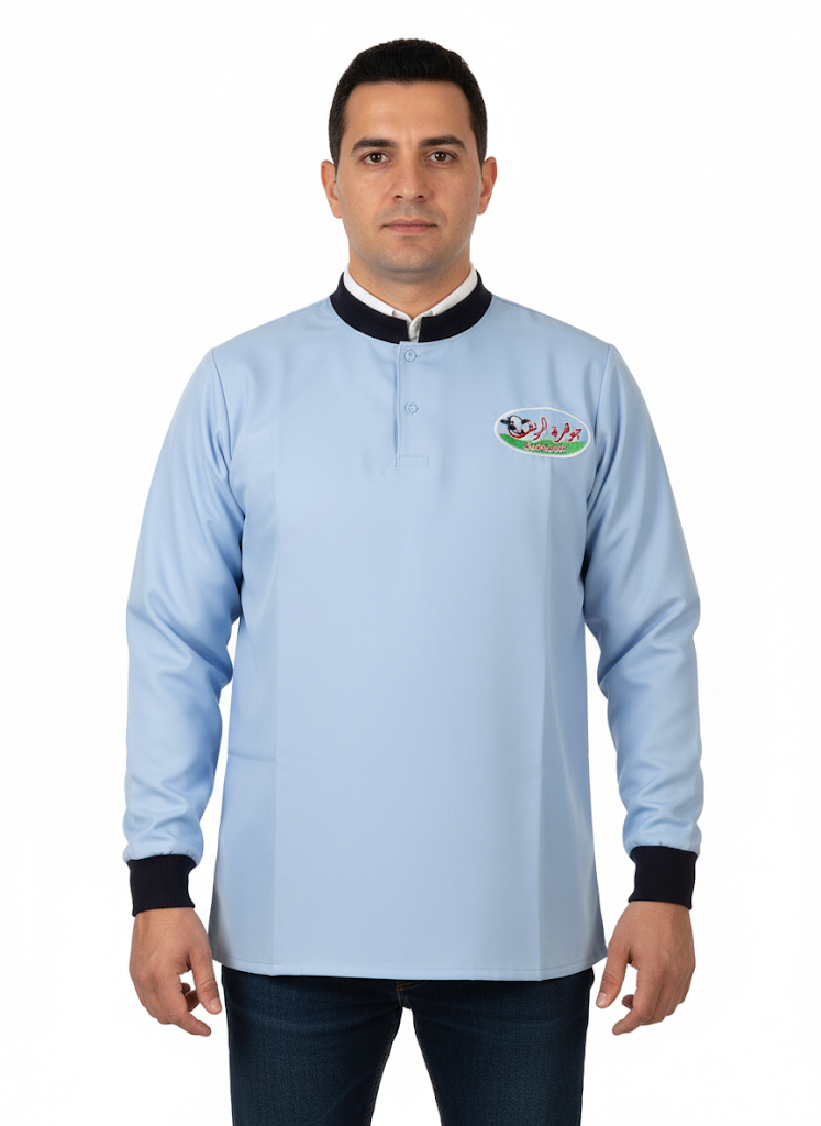 • خامات عملية: نستخدم أقمشة عالية الجودة (قطن أو خليط بوليستر/قطن) مقاومة للانكماش وتسمح بمرور الهواء، مما يضمن الراحة طوال ساعات العمل الطويلة.